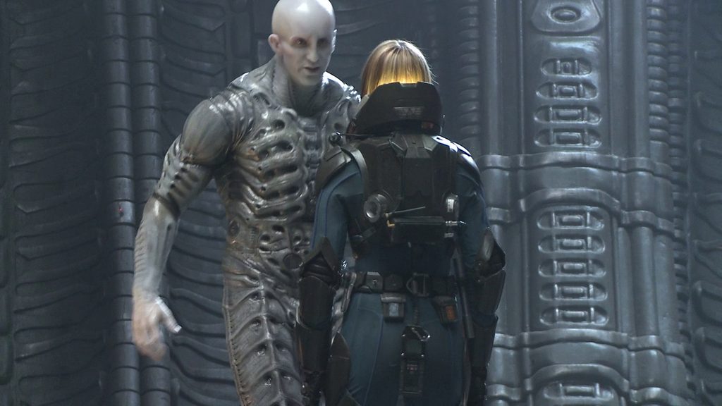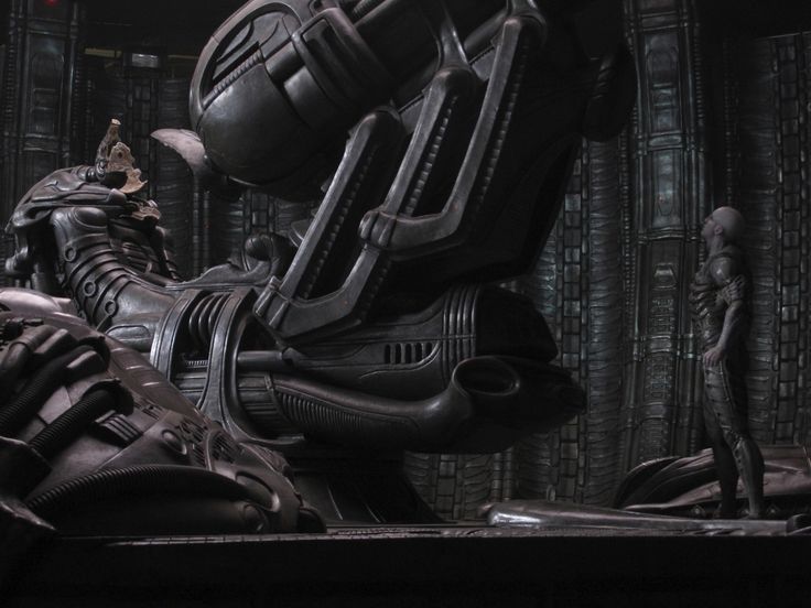 fix this if I could. My solution to this is... The Engineers are a bio-engineered slave species that are the workers of their Mala'kak masters. The Mala'kak are the true bio-mechanical race and so far beyond our human understanding. Their natural languages could be quite musical, and this would explain the use of the flute like instruments used to interact with the Engineer ships. The Engineer's ships are different to the Mala'kak Juggernauts as seen in Alien's Derelict. Although they both appear to be similar in design other than the command centres of each ship type. Mala'kak Juggernauts. The interiors are subtly different too. The Engineer ships appear more mechanical compared to the Mala'kak's more biological aesthetic. |